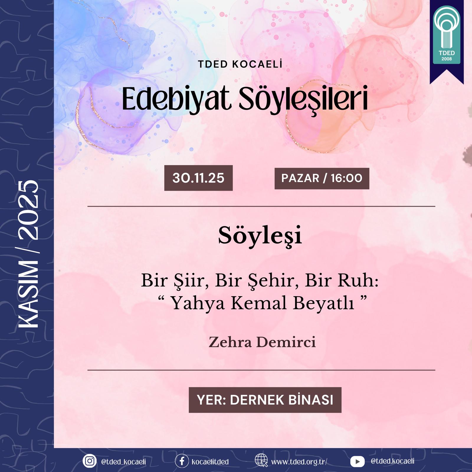 #TDEDKocaeli #EdebiyatSöyleşileri #YahyaKemalBeyatlı #Edebiyat #Şiir #KültürSanat #KocaeliEtkinlik #KasımEtkinlikleri #ZehraDemirci #BirŞiirBirŞehirBirRuh #gebze #kocaeli̇