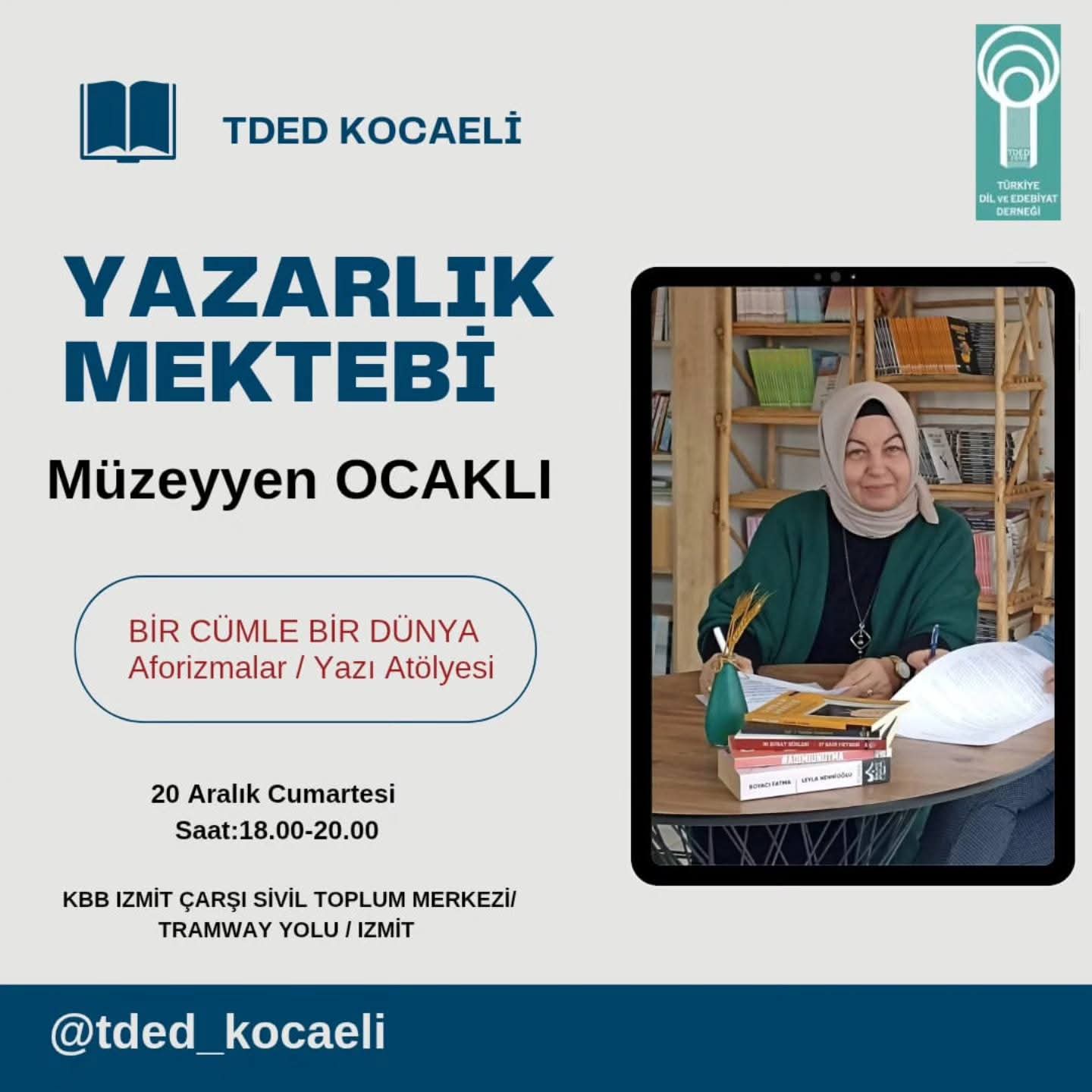 #TdedKocaeli #TdedYazarlıkMektebi #izmityazarlıkmektebi #yazarlıkmektebi #İzmit #kocaeli̇ #müzeyyenocaklı