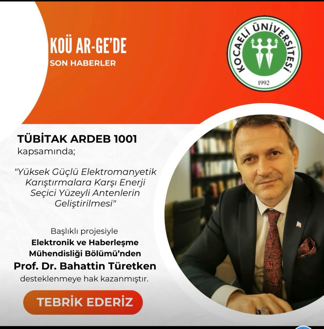 başlıklı projesi dolayısıyla Prof. Dr. Bahattin Türetken hocamızı tebrik ediyor, akademik çalışmalarında başarılarının artarak devam etmesini diliyoruz.